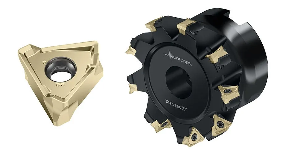 Wo die bislang verfügbare Geometrie G57 vor allem bei guten bis mittleren Bedingungen, niedrigen Schnittkräften und mittleren Vorschüben (z.B. bei vorbearbeiteten Werkstücken) gute Dienste leistete, ergänzt jetzt die gesinterte G27 das Walter Programm. Eine Geometrie, die für schwierige Aufgaben wie labile Aufspannungen, unterbrochene Schnitte oder Schmiedehaut eingesetzt werden kann. Beide Geometrien eignen sich zum Plan-, Eck- und Taschenfräsen sowie zum Bohrzirkularfräsen und Schrägeintauchen in Stahl- und Gusswerkstoffen, aber auch in rostfreiem und schwer zerspanbarem Material. Den Fräserkörper selbst hat Walter mit Bohrungsaufnahme und Weldonschaft sowie in neuen Inch-Durchmessern (1–4") im Programm. Die hohe Prozesssicherheit und Wirtschaftlichkeit, aufgrund niedriger Schneidstoffkosten und die verschleißfesten Tiger·tec® Sorten machen den Fräser, nicht zuletzt für Anwender mit mittleren Stückzahlen interessant.